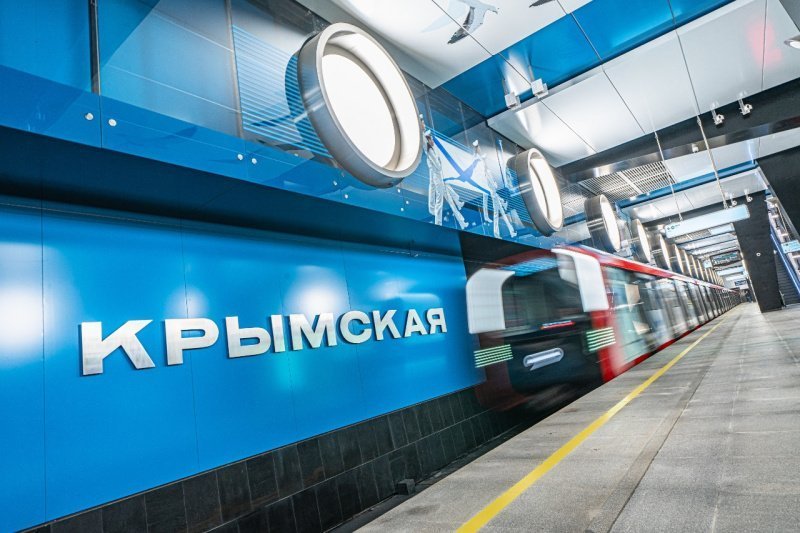 Станцию «Крымская», расположенную между Севастопольским проспектом и Павелецким направлением МЖД, отличает морская тематика. Колонны и балки на платформенной части станции напоминают крылья парящих птиц. Расположенные на путевых стенах светильники выполнены в виде судовых иллюминаторов. Станцию украшают тематические художественные композиции в технике печати на стекле, а эскалаторный наклон восточного вестибюля – изображения парящих чаек, выполненные в технике печати на панелях облицовки. В оформлении станции преобладают синие оттенки, а также белый и черный цвета. На главном фасаде западного вестибюля размещен силуэт полуострова Крым, выполненный в виде барельефа из нержавеющей стали с подсветкой.