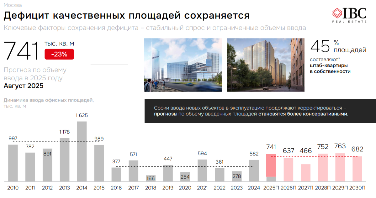 Что касается офисных площадей, то дефицит качественных предложений сохраняется. При этом объем введенных площадей остается ограниченным, а сроки ввода новых объектов продолжают откладываться.