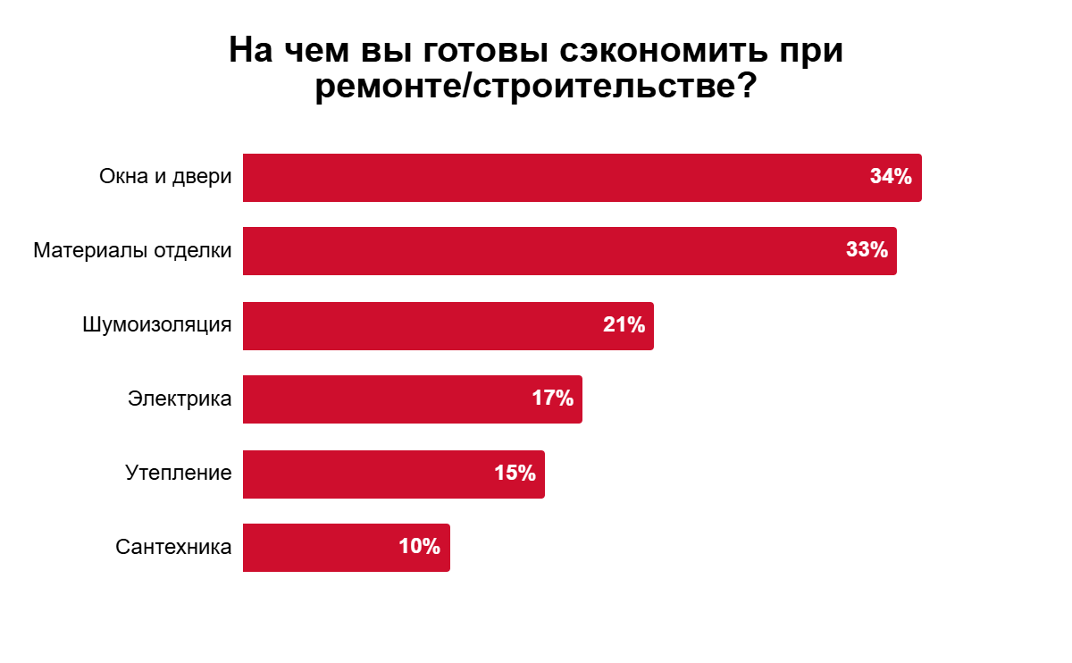 При этом экономия затрагивает не только отделку и изоляцию, но и другие критически важные решения – электрику (17%), утепление (15%) и сантехнику (10%). То есть «урезание» бюджета чаще всего приходится именно на те элементы, которые напрямую влияют на тепло, тишину и безопасность жилья.